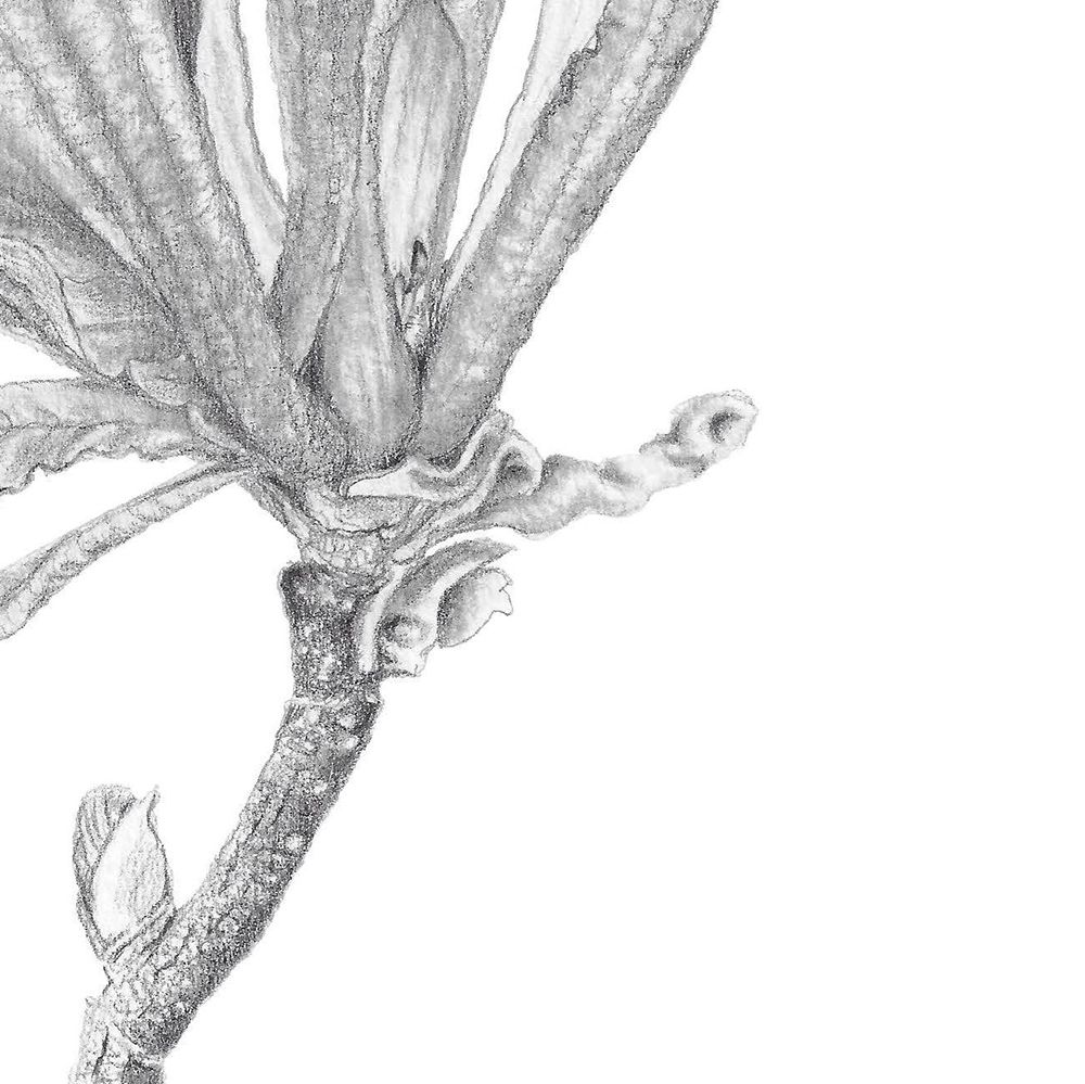 Drawn after a magnolia flower I photographed while walking on the quiet streets of a small Austrian village, on a warm spring day.
