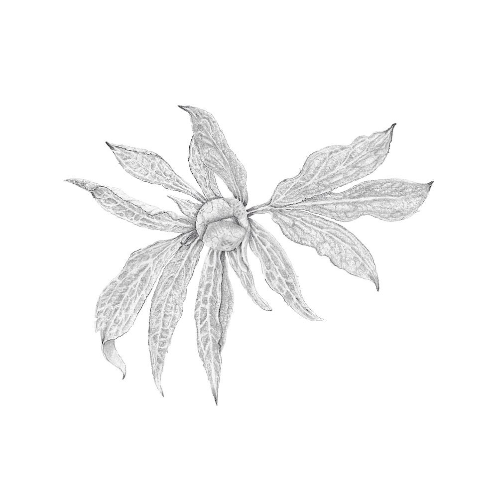 Drawn after a peony bud growing in our garden.